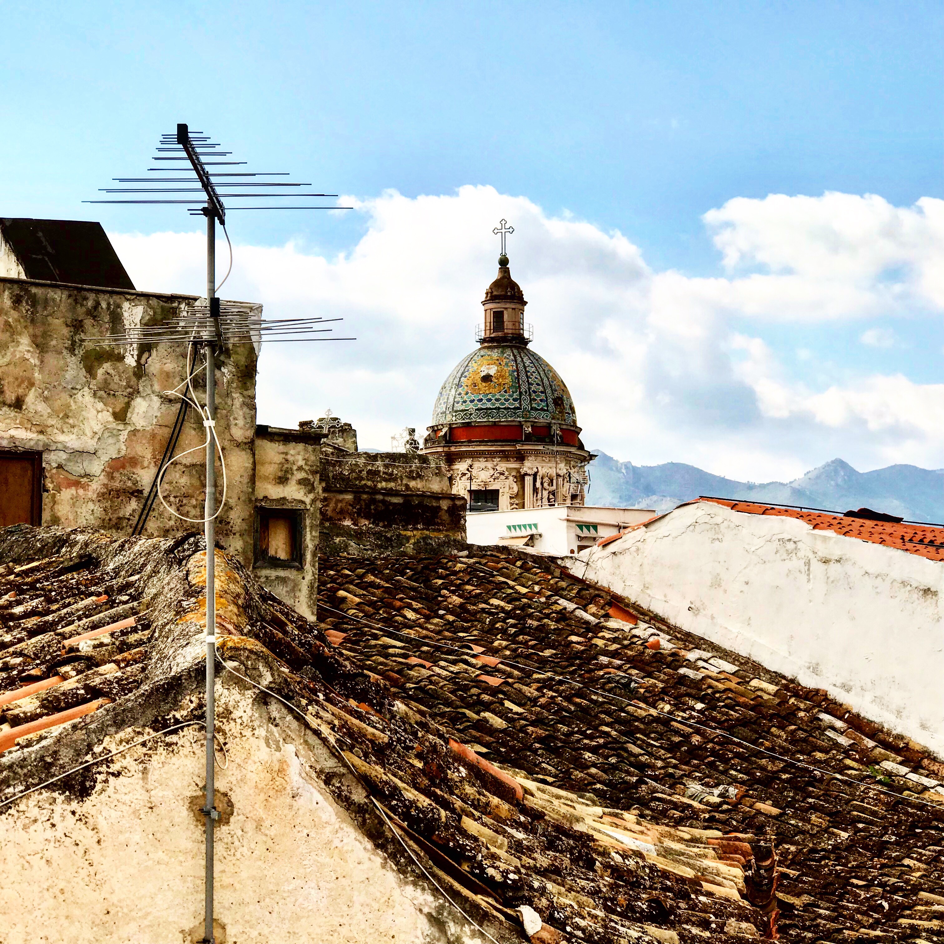 We had the luck to rent a wonderful Airbnb with a roof terrace in the quartier „Ballarò“. This is its view. And again you can catch a scent of oriental breeze through the turquoise tiles of the tower in the back. A great point to start excursions. Also near the station, where the busses to the airport leave.